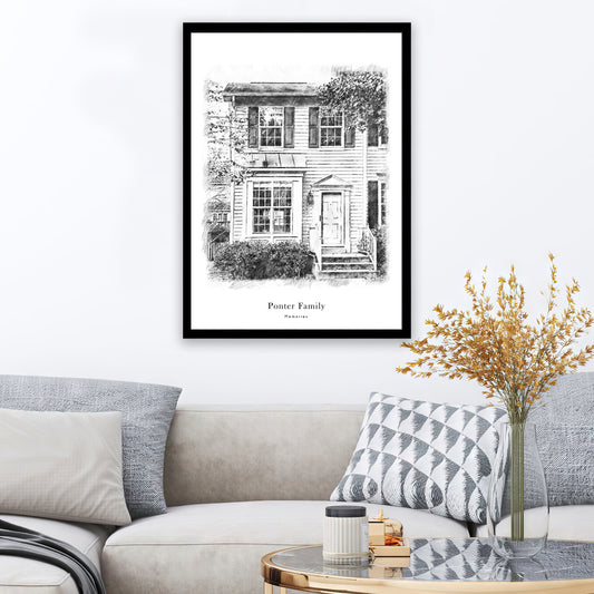 Custom Black & White House Sketch Portrait